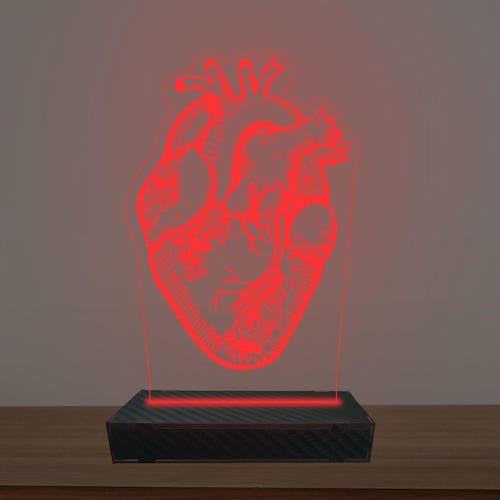 Luminária Led 3d Coração Anatomia Abajur Luxo - Cor: Vermelho