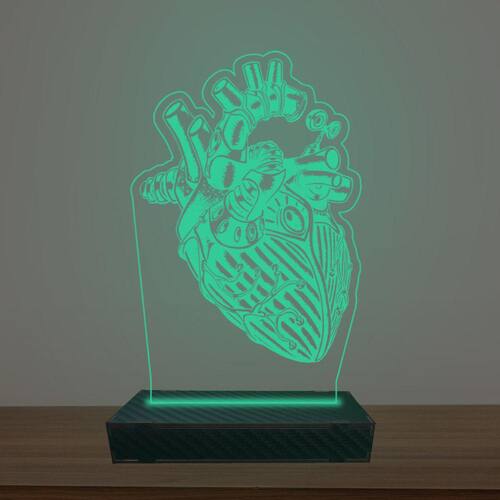 Luminária Led 3d Coração Mecânico Abajur Luxo - Cor: Verde