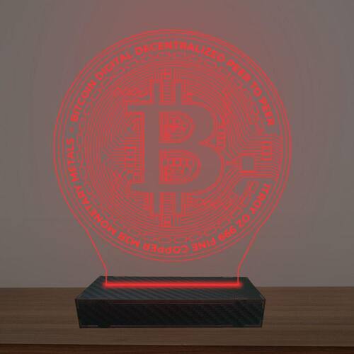Luminária Led 3D Cripetomoeda Bit Coin Abajur Luxo - Cor: Vermelho