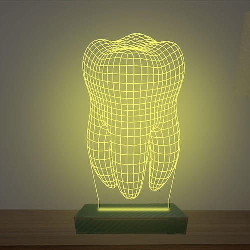 Luminária Led 3d Dente Destista Abajur Luxo - Cor: Amarelo