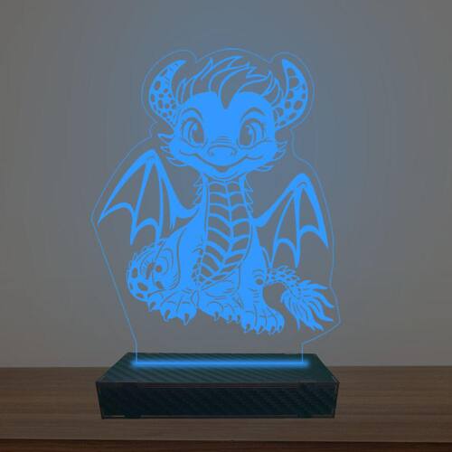 Luminária Led 3d Dragão Bebê Abajur Luxo - Cor: Azul