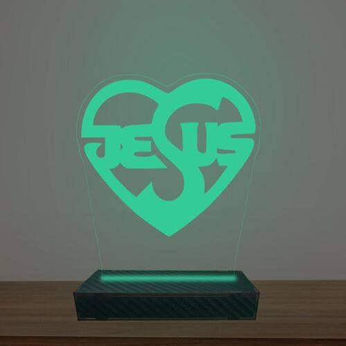 Luminária Led 3d Jesus Coração Abajur Luxo - Cor: Verde