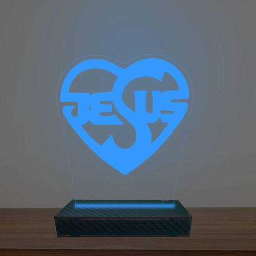 Luminária Led 3d Jesus Coração Abajur Luxo - Cor: Azul