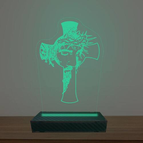 Luminária Led 3d Jesus Na Cruz Abajur Luxo - Cor: Verde