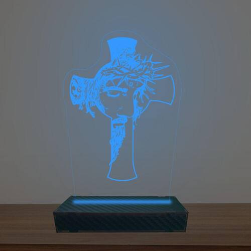 Luminária Led 3d Jesus Na Cruz Abajur Luxo - Cor: Azul