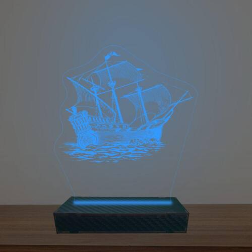 Luminária Led 3d Navio Abajur Luxo - Cor: Azul
