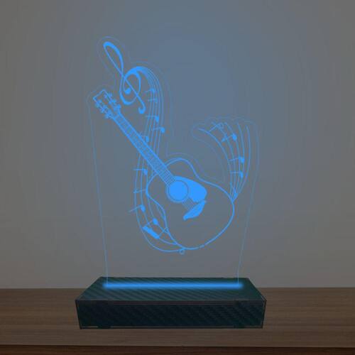 Luminária Led 3d Violão na Clave de Sol Abajur Luxo - Cor: Azul