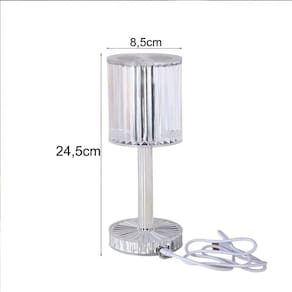 Luminária LED Abajur Acrílico Transparente Recarregável.