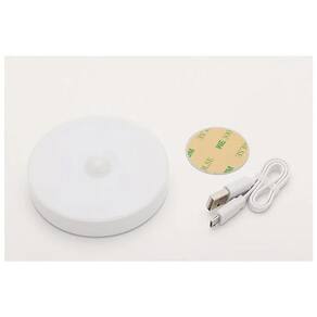 Luminária com base que possibilita, colar, pendurar ou colocar sobre base metálica por atração magnética. Luz amarela. Não precisa de fios, carregável. Pode ser Utilizado em cômodos , armários, escadas, balcões e outros espaços que precisem iluminação. Em ambientes iluminados iluminados, automaticamente entra em modo sleep. Em ambientes escuros, acende ao detectar a presença de calor do corpo humano e desliga a cada 20s, após inércia. Luz sinalizadora de baixa carga. A base do produto é magnética e pode ser fixada em superfícies metálicas. Medida 8,5cm diâmetro. Marca: Não Informado