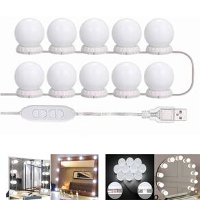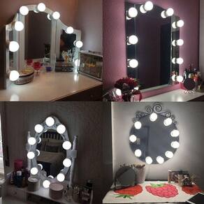 O Kit é composto por 10 lâmpadas de Led que poderão ser fixadas em seu espelho ou parede sem nenhuma dificuldade, através de fita dupla face ou ventosa de plástico ambas vem na embalagem .