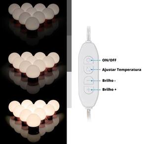 Possui interruptor LIGA/DESLIGA, ajuste de brilho e também possui 3 tonalidades nas luzes: branco quente, neutro e branco frio.