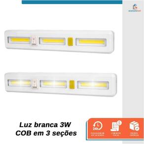 Características: Luz branca 3W COB em 3 seções: garante ótima iluminação em diferentes áreas. Temporizador de 1 minuto: desliga automaticamente após 1 minuto, evitando o desperdício de pilhas. Pontos de imã e furos para suporte: facilitam a fixação em diversas superfícies. Corpo em plástico ABS: resistente e durável. Funções: liga - desliga: controle simples e intuitivo. Pilha 4XAAA não acompanha . Ref.: 7101147 Marca: Starfer