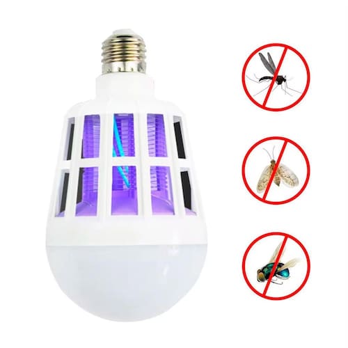 - Construída com chips de LED que emitem luz azul de raios ultravioleta atraente para mosquitos, eliminados por um choque elétrico. - Área de cobertura ampla e eficaz. - Design 2 em 1, permitindo uso como iluminação ou exterminador de insetos. - Mais segura e prática em comparação com outros métodos de repelência a insetos. - Fácil de operar, adequada para uso interno ou externo em qualquer soquete padrão de lâmpada, ideal para varandas e jardins.