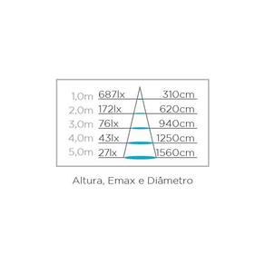 Tensão: 100-240v Fator de potência: 0,9 Corrente: 0,19a(127v) / 0,12a(220v) Fluxo luminoso 3000k: 1700lm Fluxo luminoso 4000k: 1730lm Eficiência luminosa 3000k: 71lm/w Eficiência luminosa 4000k: 72lm/w Ângulo de abertura: 120° Irc: 80 Vida útil (l70): 25.000h Temp. De operação: 10°c ~ 40°c Garantia: 2 anos Material predominante: policarbonato
