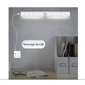 Led sensor de movimento. Não precisa de fiação, sem necessidade de parafusar, super facil de instalar. Comprimento: 40 cm Duração da bateria em media 3 horas acesso direto Adequado para quartos guarda roupas, estantes, corredores e outros espaços que necessitem de iluminação. Para instalação basta retirar a fita 3M da ima e colar aonde desejar.- Pressionando o botão do interruptor pela primeira vez para entrar no modo de indução automática- Pressionando a 2o vez ela pisca a luz duas vezes, ela sempre está ligada- Pressionando a 3o vez para ela desligar Quando ele estiver em um ambiente claro ele entra no modo de dormência e a distancia de detecção é maior ou igual a 3 metros. Após um atraso de 18 segundos ele apaga automaticamente Exemplo: Em um corredor esta com pouca iluminação alguém de aproxima ele acende. Quando a bateria esta fraca acende uma luz vermelha, durante o carregamento ela continua, só apaga depois que a carga estiver completa Ean: 7137449600164
