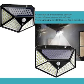 Descrição do anúncio: A combinação perfeita de iluminação e design. Esta luminária dará vida aos seus espaços para que você possa aproveitá-los ao máximo. Além disso, você pode personalizar seus cantinhos favoritos e dar-lhes detalhes diferenciados. Ilumine seus espaços: este modelo é adequado para lâmpadas com tecnologia led, que além de contribuir para o cuidado do meio ambiente, duram mais e permitem economizar até 90% mais do que as luzes convencionais. Personalize com estilo: graças ao seu material resistente, você pode instalar esta luminária ao ar livre e garantir uma excelente qualidade de iluminação sem risco de deterioração. Recomendações: é adequado para ambientes ao ar livre, portões de jardim, terraços, paredes externas, garagens, quintais, vitrines, lojas, casas e outros ambientes ao ar livre, sem necessidade de fiação ou eletricidade. Conteúdo da embalagem: 01 arandela solar com 100 leds 01 manual de instruções 01 kit de instalação Características: Função 1: permanece desligada e acende sua luz máxima sempre que detectar movimento. Para ativar, aperte uma vez o botão de ligar. Função 2: permanece ligada em luz média de forma constante mesmo sem detectar movimento. Função 3: permanece ligada de forma constante em luz fraca mesmo sem detectar movimento, ao detectar movimento é ativada a luz forte. Material resistente: feita de abs, garante durabilidade e resistência às condições climáticas. Especificações: Potência: 20w Luminosidade: 600lm Quantidade de leds: 100 Ângulo de iluminação: 270º Ângulo do sensor de presença: 120º Fonte de alimentação: solar Distância do sensor: 3-5m Classe de proteção: ip65 Material: abs Autonomia da bateria: 1200mah Cor do led: branco frio Tempo de uso: até 10h Tempo de carregamento: 2 - 7h no sol Resistente à água Principais perguntas sobre o produto e respostas: 1 esta luminária pode ser Utilizado em ambientes internos Sim, embora seja projetada para uso ao ar livre, ela também pode ser utilizada em ambientes internos, dependendo de sua necessidade. 2 a luminária precisa de fiação para funcionar Não, ela é alimentada por energia solar, eliminando a necessidade de qualquer fiação. 3 quanto tempo dura a bateria da luminária A autonomia da bateria é de até 10 horas após um carregamento completo. 4 quais são as opções de iluminação disponíveis A luminária possui três funções: luz máxima ao detectar movimento, luz média constante, e luz fraca constante que aumenta ao detectar movimento. 5 o produto é resistente à água Sim, a luminária tem classe de proteção ip65, sendo resistente à água e adequada para uso ao ar livre.