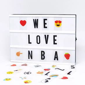 Luminária led lightbox cinema a4 + 181 letras e números Coloque suas mensagens pessoais no centro das atenções com esta caixa de luz. São três painéis para inserir letras, ícones ou símbolos, permitindo que você coloque a frase que você quiser ou exiba seus ícones favoritos. Características: Tamanho: 30cm x 22cm x 4cm; Alimentação: cabo usb incluso ou pilha aa não inclusa Conteúdo da embalagem: 01 luminária light box 181 cartões letras, números,emojis e símbolos 01 cabo usb