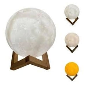 - 1 luminaria lua 3d 15 cm - 1 cabo usb - suporte montável de madeira - não acompanha fonte - 3 cores branco quente, branco frio e branco neutro - ideais para harmonização de ambientes de relaxamento. Marca: Vitoria Trend