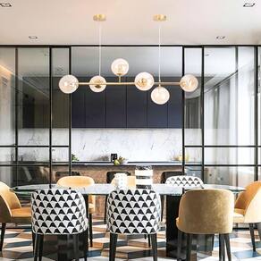 1 x Luminária Pendente 6 Globos Gimpo KJDD-E-544-GOLD-Amber-6.