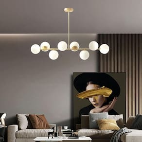1 x Luminária Pendente 8 Globos Gimpo KJDD-E-547-GOLD-Milky-8.