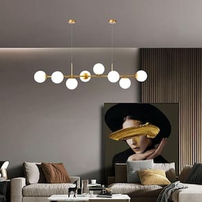 Luminária Lustre 8 Globos 128cm x 118cm Jabuticaba Pendente Teto Gimpo KJDD-E-544-GOLD-Milky-8