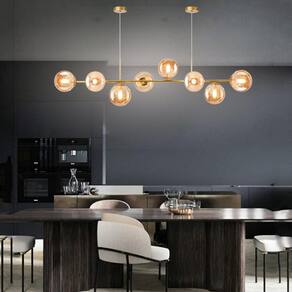 1 x Luminária Lustre Pendente 8 Globos Gimpo KJDD-E-544-GOLD-Amber-8.