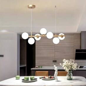 O globo de vidro branco leitoso fosco possui 13cm de diâmetro. Ao total são 7 globos. Cada globo poderá ser utilizado com uma lâmpada padrão E27, até 40 Watts. Todos os soquetes E27, os bocais, já possuem rabicho, fiação, pronta e montada, bastando conectar a lâmpada. Ainda, para maior comodidade e praticidade, segue um kit fixação para o teto com travessa, parafusos, buchas e arruelas. Facilita então, a instalação no teto e na corrente elétrica.
