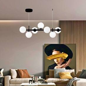 O globo de vidro branco leitoso fosco possui 13cm de diâmetro. Ao total são 7 globos. Cada globo poderá ser utilizado com uma lâmpada padrão E27, até 40 Watts. Todos os soquetes E27, os bocais, já possuem rabicho, fiação, pronta e montada, bastando conectar a lâmpada. Ainda, para maior comodidade e praticidade, segue um kit fixação para o teto com travessa, parafusos, buchas e arruelas. Facilita então, a instalação no teto e na corrente elétrica.