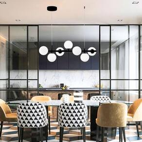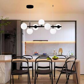 1 x Luminária Pendente 7 Globos Gimpo KJDD-E-545-PRETO-Milky-7.