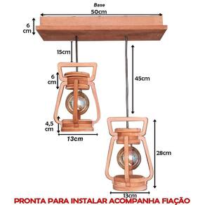 - diâmetro 13cm - tamanho lampião 28cm - base do teto 50cm - peso do produto 2 kg - bocais 2 - kit sim