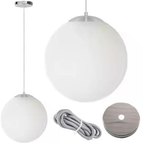O corpo da luminária é metálico, assim como, a base de teto e a fiação elétrica, também no mesmo tom de cor. Composta por um globo de vidro branco leitoso fosco de 15cm, transmite leveza e organicidade. Acompanha fiação elétrica de 2 metros já instalada no soquete E27. A altura do cabo elétrico pode ser regulado no momento da instalação, tornando-se versátil para diversos espaços, possibilitando ser montado com alturas entre 18cm e 215cm. Ainda, inclui um kit fixação com travessa, parafusos, buchas e arruelas, para maior comodidade e praticidade. Tudo isto, proporciona uma atmosfera orgânica e única à luminária.