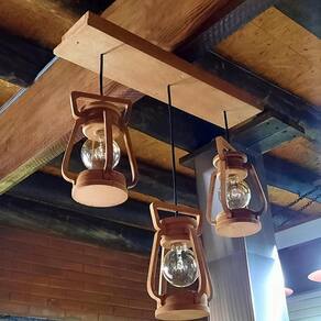 Luminária lampião rustico, fabricado em mdf e pintado a mão. Envernizado deixando um acabamento envelhecido perfeito.