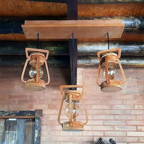 Luminária lampião rustico, fabricado em mdf e pintado a mão. Envernizado deixando um acabamento envelhecido perfeito.