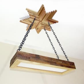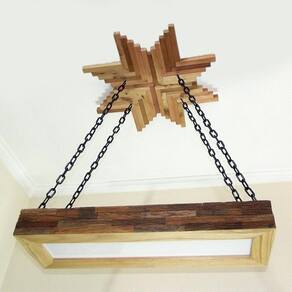 Luminária lustre pendente rústico madeira led lustre 40w :-:-:-:-:-:-:luminária lustre pendente rústico retro madeira 65cm com lâmpada:-:-:-:-:-:-: Ilumine sua casa com estilo e economia Compre agora e ilumine sua casa com estilo e economia Lindo para decorar em cima de uma mesa de jantar, hall de entrada área de churrasco, ambientes como áreas de garagem, garagens com bar, chácara, decorar festas, lanchonetes, casa de campo, pousadas entre outras. Deixando seu ambiente ainda mais agradável. Garantimos a qualidade de nossos produtos Nossos produtos são de fabricação própria cortadas com cnc router que nos traz medidas e ângulos perfeitos nosso acabamento é feito à mão, são envernizados com verniz de alta resistência e durabilidade dando assim um ótimo acabamento. :::especificações técnica::: ::: acompanha fiação ::: ::: acompanha lâmpada ::: : características da luminária: - dimensões: - comprimento 65 cm - largura 22 cm - altura 8 cm - peso do produto 9 kg - material: madeira - ecologicamente correto com certificado fsc de alta qualidade - cor: madeira - nível de instalação: fácil - garantia de 12 meses contra defeitos de fabricação :::conteúdo da embalagem::: - soquetes sim- fios sim- lâmpadas sim 40w Os objetos decorativos não acompanham o produto Perguntas frequentes Os produtos são novosSim todos os nossos produtos são novos. Os produtos têm garantiaSim, todos os nossos produtos têm garantia de fábrica. 12 meses Qual a voltagemA voltagem depende da lâmpada 100/220 v Acompanha as lâmpadasAs lâmpadas não acompanha o produto Aguardamos sua um compra, é sempre prazer atendê-los