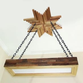 Bem-vindo :-:-:-:-:-:-:Luminária Lustre Pendente Rústico Retro Madeira 65CM COM LÂMPADA:-:-:-:-:-:-: Ilumine sua casa com estilo e economia! Nossas luminárias oferecem a combinação perfeita de estilo e economia. Com design moderno e tecnologia de ponta, elas proporcionam a iluminação ideal para qualquer ambiente, além de ajudar a reduzir sua conta de energia. Escolha entre uma variedade de modelos e aproveite essa oferta exclusiva para renovar a iluminação da sua casa! Compre agora e ilumine sua casa com estilo e economia! Lindo para decorar em cima de uma mesa de jantar, Hall de entrada área de churrasco, ambientes como áreas de garagem, garagens com bar, chácara, decorar festas, lanchonetes, casa de campo, pousadas entre outras. Deixando seu ambiente ainda mais agradável. Garantimos a qualidade de nossos produtos Nossos produtos são de fabricação própria cortadas com CNC ROUTER que nos traz medidas e ângulos perfeitos nosso acabamento é feito à mão, são envernizados com verniz de alta resistência e durabilidade dando assim um ótimo acabamento. :::Especificações Técnica::: ::: ACOMPANHA FIAÇÃO ::: ::: ACOMPANHA LÂMPADA ::: : CARACTERÍSTICAS DA LUMINÁRIA: - Marca: Eco.Start - Dimensões: • - COMPRIMENTO 65 cm • - LARGURA 22 cm • - ALTURA 8 cm • - Peso do Produto 9 kg - Material: Madeira - Ecologicamente Correto com Certificado FSC de alta qualidade • - Cor: Madeira • - Nível de Instalação: Fácil • - Garantia de 12 MESES Contra Defeitos de Fabricação :::CONTEÚDO DA EMBALAGEM::: - Soquetes SIM - Fios SIM - Lâmpadas SIM 40w * Os objetos decorativos não acompanham o produto* PERGUNTAS FREQUENTES OS PRODUTOS SÃO NOVOS? Sim! Todos os nossos produtos são novos. OS PRODUTOS TÊM GARANTIA? Sim, todos os nossos produtos têm garantia de fábrica. (12 meses) QUAL A VOLTAGEM? A voltagem depende da lâmpada 100/220 v ACOMPANHA AS LÂMPADAS? As lâmpadas não acompanha o produto Aguardamos sua um compra, é sempre prazer atendê-los Marca: Eco.Start e-commerce