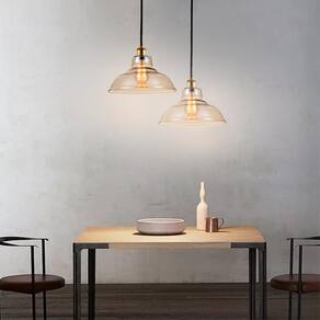 Luminária Lustre Pendente Teto 28x22cm Vidro Âmbar Industrial Retrô Vintage E27 Gimpo KJDD-E-188
