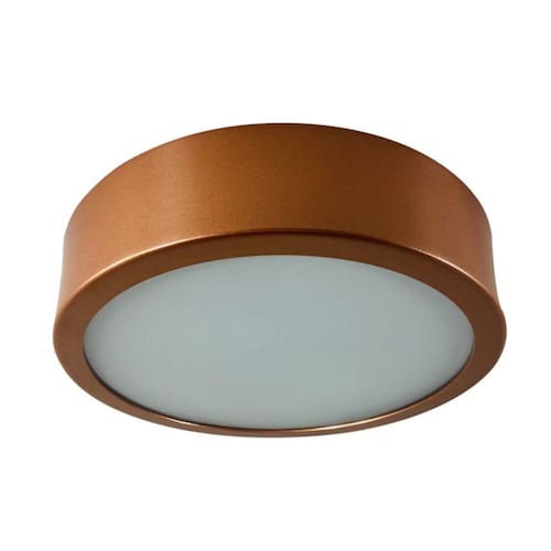 Plafon Redondo Pizza Sobrepor. Modelo para lâmpadas E27. Fabricado em chapa de alumínio repuxado com pintura epóxi na cor cobre e difusor em acrílico Fixação por meio de parafusos. Para teto sobrepor. Modelo redondo | 221 Tipo de lâmpada: E27 Bulbo A60 até 9W. Medidas:| Ø 240mm. Altura: 80mm. Iluminação difusa e confortável. comporta duas lampadas (lampada nao acompanham)