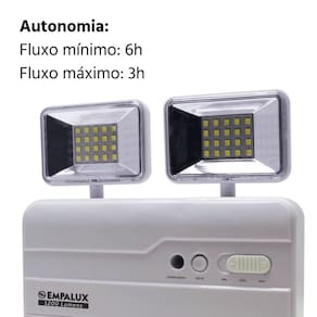 Iluminação de emergência compacta e eficiente. Com 40 LEDs de alta luminosidade, garante 1200 lumens de luz branca fria. Ideal para locais que exigem segurança em caso de falta de energia.