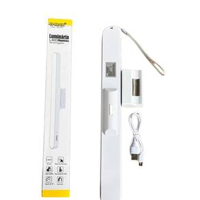 Luminária Luz De LED Magnética USB Recarregável Descrição Perfeita para iluminação de armários de cozinha, guarda roupas, closets, escadas, pias, mesa de escritório, nichos, etc Possui 28 leds sendo 14 branco frio e 14 branco quente. Através do botão on/off vc controla tanto as tonalidades como a luminosidade. Possui uma base que pode ser colada com tira dupla face incluída no kit, possui fácil instalação.