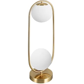 Luminária Mesa Abajur 43x20cm Jabuticaba 2 Globos Metálica Dourada KJTD-697-GOLD Gimpo 1 x Luminária Abajur 43x20cm Jabuticaba 2 Globos KJTD-697-GOLD Gimpo. 2 Globos de Vidro Brancos Foscos 15cm. Estrutura Metálica Dourada. Bivolt 110/220v . Soquete E27. Até 60 Watts cada. A luminária de mesa abajur dourada KJTD-697-GOLD da Gimpo é estilosa, elegante e sofisticada. Um design fluido e contemporâneo inspirado na beleza orgânica das árvores Jabuticabeiras do Brasil. Os frutos, as jabuticabas, em fusão com a arte, são expressados pelos globos de vidro. Se destacam, desse modo, por um desenho autêntico e diferenciado. Unem beleza e funcionalidade. Natureza e modernidade. Uma peça orgânica, delicada e funcional para iluminar ambientes e transmitir conforto e iluminação de qualidade. Se o desejo é transmitir bom gosto e requinte, esta luminária é a solução mais recomendada para compor mesas, corredores, bancadas, escritórios, salas de estudo, quartos, cabeceiras, escrivaninhas, estúdios, clínicas, home offices, bares, cafeterias, lojas, entre outros espaços. Sua estrutura é toda metálica dourada e possui 40cm de altura x 20cm de largura. Montada, a altura total alcança 43cm. A base é pesada, o que garante o suporte necessário para firmeza e estabilidade, além disso, conta com material antiderrapante e antirrisco na sua porção inferior. Os 2 globos de vidro brancos foscos de 15cm difundem a luz uniformemente, de modo suave e agradável aos olhos, e criam um ambiente aconchegante e confortável. Conta com cabo elétrico de 210cm, liga/desliga a 120cm da base e plugue de tomada de 2 pinos, padrão brasileiro. Os soquetes são modelo E27 e compatíveis com a maioria das lâmpadas. Suporta até 60 Watts cada, e, por ser um produto bivolt, ele funciona em redes 110v ou 220v - basta usar a lâmpada correspondente ou uma bivolt para praticidade total. E o melhor, mesmo desligado, o lustre já funciona como peça decorativa. Uma vez montado e instalado, o ambiente será tomado por uma atmosfera de organicidade e leveza única. Ilumine seus momentos com estilo, requinte e modernidade. Luminárias Gimpo. Elementos de beleza que complementam qualquer decoração. Especificações: 1 Luminária Abajur 43x20cm Jabuticaba 2 Globos KJTD-697-GOLD Gimpo. Medidas: 43cm altura x 20cm largura x 15cm profundidade. Material: metal e vidro. Globos de vidro: 2 peças, 15cm diâmetro. Cor dos globos: branco fosco leitoso. Abertura traseira: 6,5cm. Base: tampo metálico dourado, 15cm x 2,5cm. Peso da base: 0,7kg. Base Antirrisco: sim. Base Antiderrapante: sim. Fiação elétrica: 2,10m. Cor do fio: preto. Distância do até a base: 120cm. Potência máxima: 60 Watts. Soquete E27. Plugue de tomada: padrão brasileiro 2 pinos . Necessita montagem: sim dispensa ferramentas . Medidas da caixa: 41 X 30 X 21CM. Peso total da caixa: 1,3kg. : 3 Meses. Modelo: KJTD-697-GOLD. EAN: 7898680304326. Marca: Gimpo. Sempre verifique a cor do produto ANTES de concluir a compra. Não fazemos alterações posteriores em pedidos. Imagens do anúncio são ilustrativas.