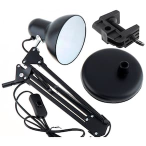 Além da base, acompanha uma garra em C para usar em diferente locais e trazer uma economia de espaço em sua bancada ou mesa. Com a garra é possui fixar a luminária tanto na vertical como na horizontal. A garra é do tipo parafuso, e não do tipo tensão, o que evita deixar marcas de mordida na mesa.