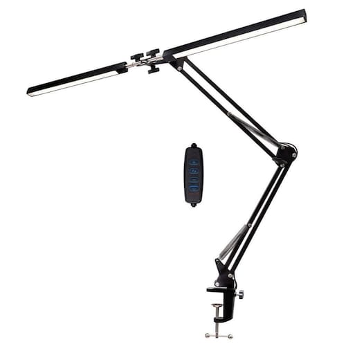 Luminária Mesa Dupla Led 3 Cores Articulada Com Base E Garra Giratoria 360 Preto Luminária led KAISA com braço oscilante longo Dupla Tecnologia de iluminação avançada Giratoria Sem ofuscamento. Sem iluminação estroboscópica e suave, boa para proteção. Interruptor de toque, mais conveniente para operação. Ângulo de iluminação de rotação de vários ângulos. Design de moda, romance de design estrutural. Fonte 12 V Temperatura de cor: 3000k / 4500k / 6500k Ajuste de brilho: 10 níveis ( Forte ao Fraco ) Vida util 30.000 horas. Quantidade de Leds total 96 ( Cada astia possui 48 leds ) Potência 20-24 watts. Acompanha Suporte Base de Mesa e Garra Peso apenas da luminaria sem a base: 690 gramas Peso da Base que sustenta a luminaria na mesa: 720 gramas Cabo de Alimentação de energia: 1,50 Metros Cabo da luminaria: 1,40 Metros Total dos cabos somados: 2,90 metros Braçadeira de tamanho do produto: 700mm * 310mm * 2 tiras lam.