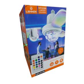 Luminaria musical rgb bluetooth ley2156 Lâmpada estilo ventilador dobrável com , luzes coloridas em rgb e branca, sendo acionada via controle remoto e com função caixa de som sendo acionada via bluetooth. Um acessório prático e divertido de usar. Faça de qualquer ambiente um verdadeiro salão de festas. Fácil de instalar e operar, basta conectá-lo ao suporte da lâmpada. Linda lâmpada giratória com efeito rgb, um equipamento de iluminação com alta qualidade e durabilidade e que permita diversas combinações de cores e efeitos de luz fonte led rgb com alto brilho, de forma automática, é ligar e se divertir. A lâmpada possui aparência bola cristal e prismática, roda automaticamente e tem cores diferentes, adequado para discoteca; shows; salão de festas; bar; palco; clube etc. Produto bivolt, de alto brilho com 6 leds internos. Obs.: as hélices não giram, o que gira é a luz dentro do globo magico dando o efeito de sequencia. Informações técnicas: Lâmpada com sistema rotativo em globo de cristal Iluminação para festa: luz giratória com variação de efeitos coloridos Com bluetooth: sim com controle remoto com 24 botoes Lâmpada estilo ventilador dobrável: rgbw colorida e luz branca Potência dos alto-falantes: 3w rms Voltagem: 110v / 220v bivolt Tipo de soquete: e27 Cor da luz: rgb e branco frio Material: plástico abs e cúpula de acrílico Peso aprox: 500g Conteúdo da embalagem: 1 lâmpada giratória colorida rgb bivolt - ley2156 1 controle remoto 1 caixa/embalagem : Confira o produto no ato do recebimento, apenas contra defeitos de fabricação diretamente com fabricante/fornecedor. Marca: Lhemox Ean: 6920231202155