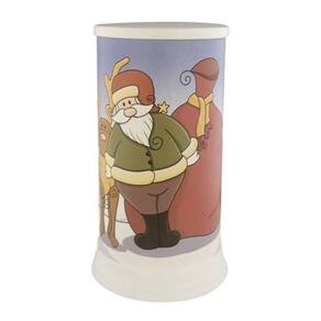 A luminária é adornada com um acabamento meticulosamente trabalhado, apresentando uma imagem clássica do Papai Noel em uma pose amigável. Elementos natalinos, como estrelas e flocos de neve, envolvem a figura central, intensificando a mágica do Natal e criando um ponto focal em sua decoração natalina.