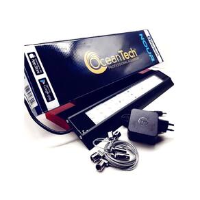Ocean tech luminária nour marine water 50cm 27w 1656 lumens bluetooth bivolt A linha de luminárias nour da ocean tech destacam-se por sua versatilidade e desempenho. Iluminação é um dos pilares para o bom funcionamento do aquário, ele pode servir para o crescimento de plantas, corais e até na coloração dos peixes. As luminárias oceantech nour e nour plus usam leds 5730 de alta qualidade e alto desempenho, o corpo é construído em alumínio extremamente robusto para uma ótima dissipação do calor sem a necessidade de ventoinhas. As luminárias oceantech nour e nour plus contam com aplicativo bluetooth podendo programar amanhecer e entardecer e 8 períodos de tempo diferente.