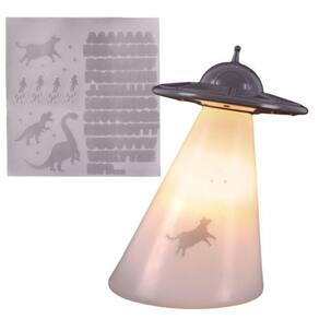 Escolha o que deseja abduzir com sua nova nave extraterrestre, através da cartela de adesivos para deixar sua decoração ainda mais personalizada. Cheia de personalidade, ela vai espantar a escuridão sempre que você tocar seu interruptor e ainda oferecer uma iluminação capaz de ficar ligada a noite sem atrapalhar ou prejudicar o sono de humanos.