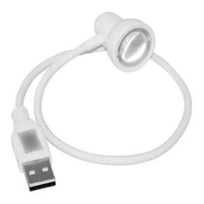 Especificações Técnicas: Luminária de LED USB Marca: Brasfort Referência: 7843 Lente grande angular Luz de excelente qualidade Durabilidade de até 40.000 horas Alimentação via USB de 5VDC Potência: 0,25W Luz auxiliar para leitura Iluminação de teclado para notebooks Compatível com carregadores de parede Cabo rígido e ajustável Acabamento na cor branca Aproximadamente 35cm de comprimento