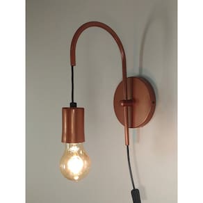 Modelo: arandela Cor es : cobre Material: alumínio Canopla de teto: alumínio 12cm Luminária: 1 soquete e27 Número de lâmpadas: 1 lâmpadas não inclusas Voltagem: 127v/220v Medida: 26 x 14 cm Peso líquido: 0,400 kg