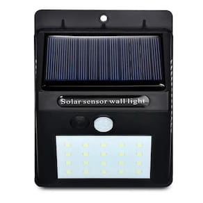 Luminária Parede Solar 30 Leds Sensor Movimento Luz Preto Luminária solar com detetor de movimento e acendimento automático acionada pela intensidade de luz ambiente. Com autonomia de até 12 horas, grande intensidade de luz, é destinada a áreas externas ja que é a prova d´água. Economia, praticidade e segurança em um mesmo produto. Esta luminária ativa quando anoitecer e permanece desligada até o acionamento pelo sensor de movimento, sendo ideal para balizamento de caminhos, jardim, corredores, etc. Especificações: - Material: ABS - Sensor de iluminação: 0,55Watts - sensor de luz Solar de Energia: 2,4 Watts, 270 lum - Fonte de energia: Sola - 30 LEDs SMD2835 - Potencia de iluminação:10 watts - Bateria: 3.7 V 18650 1200 mah - Painel Solar: 6 V/1 W - proteção em Nível: IP65 - Distância de detecção: 7 m - Autonomia de iluminação: aproximadamente 12 horas - Produto a prova d´água - tempo de vida do led: 50000 h - Tipo de instalação: Fixado Na Parede o chã - Interruptor: Botão - Sensor de movimento ângulo: 120º - Interruptor on/off Dimensões do produto: Tamanho do produto: 12,4x9,5x4,7cm Tamanho da embalagem: 13x10x5cmPeso: 155g Contém: - 1 Luminaria Solar - 1 Parafuso e bucha - 1 Fita dupla face Ean: 7890397532337