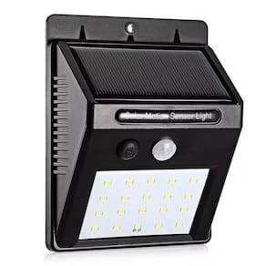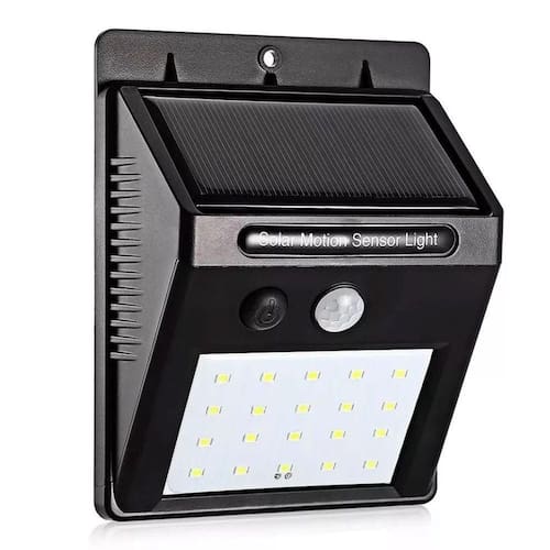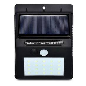 Luminária de Parede Solar 30 LEDs com Sensor de Movimento Cor Preta